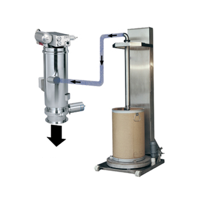 a) -真空泵通过真空输送设备的分离容器产生真空。将物料从进料口通过吸料软管与吸料口吸入。